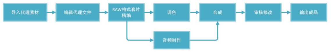对于8K ENG设备记录的RAW视频文件格式,使用代理文件编辑、套片合成输出,制作流程如图7-3所示。