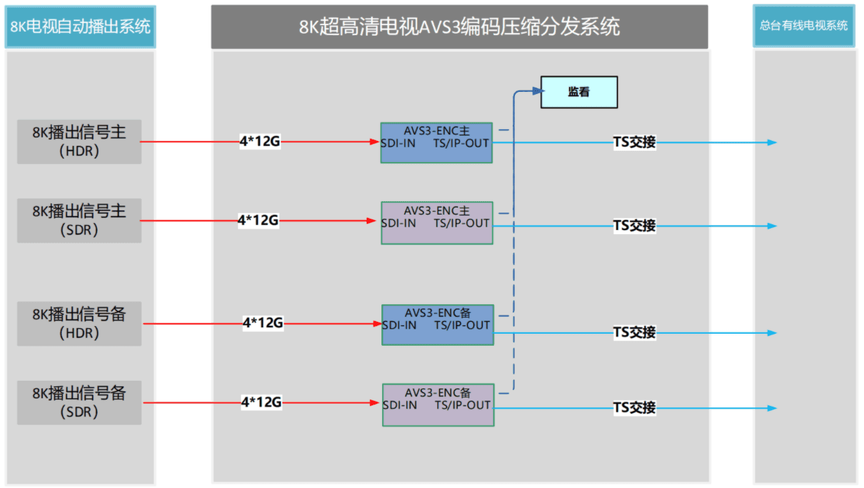 图8-1: 8K超高清播出信号AVS3编码压缩分发示意图
