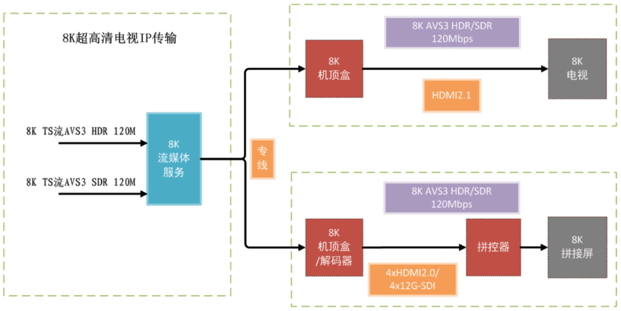 8K超高清电视视频采用AVS3/H. 266标准, 码率不低于120Mbps, 音频采用信源透传。