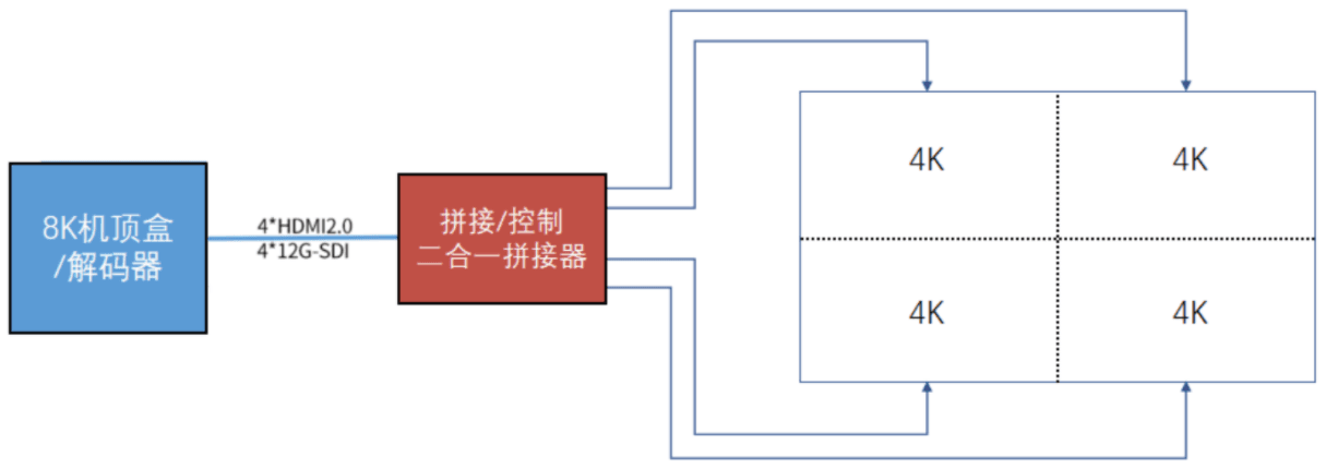 SMPTE-2110-20标准,采用4个12Gbps的视频IP组播信号流方式实现8K超高清信号传输。